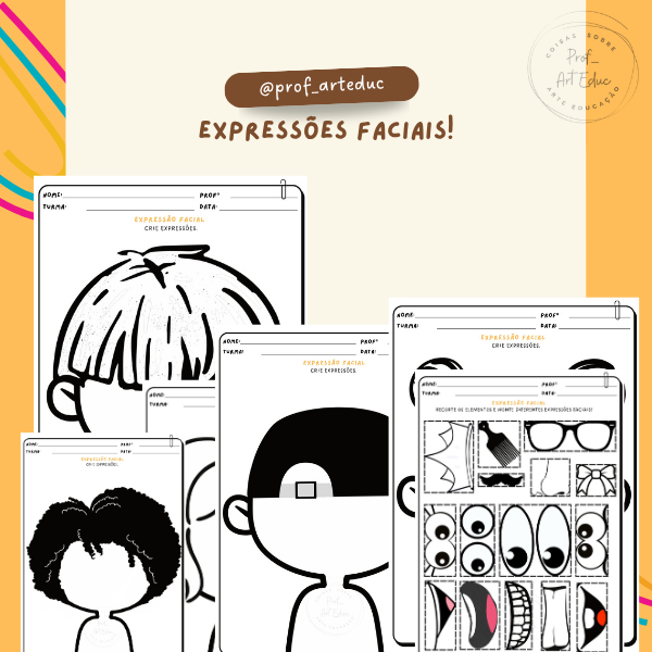 Planejamento e Atividades para impressão abordando o elemento Expressões Faciais na Arte.
